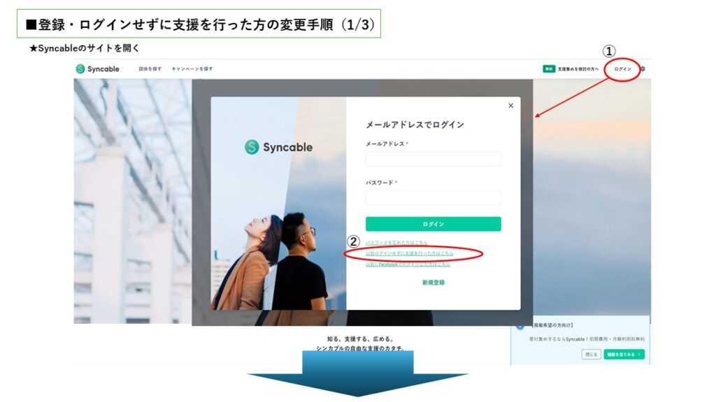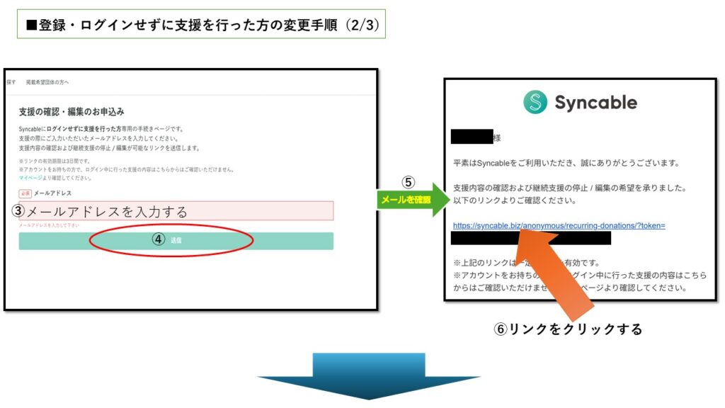 「会員登録・ログインをせずにメールアドレスのみで支援を行った方の変更手順」