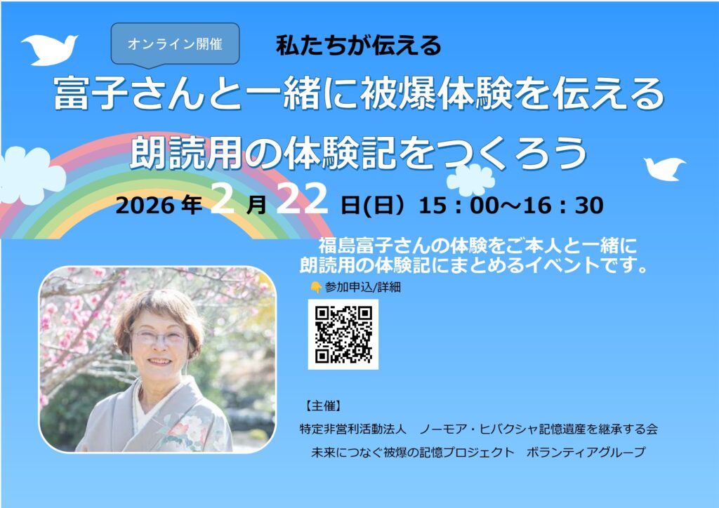 【主催】ノーモア・ヒバクシャ記憶遺産を継承する会「未来につなぐ被爆の記憶」PJボランティア・グループ